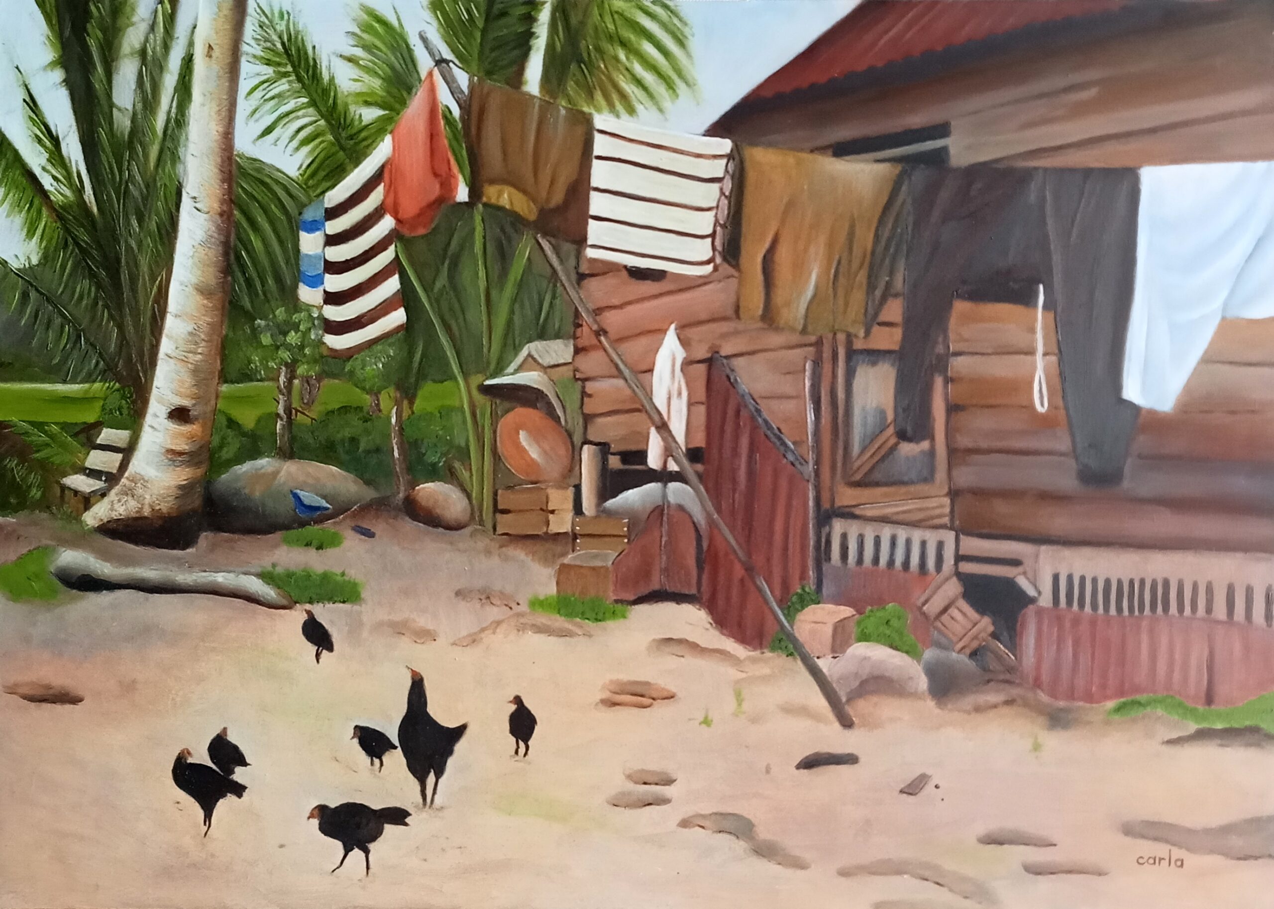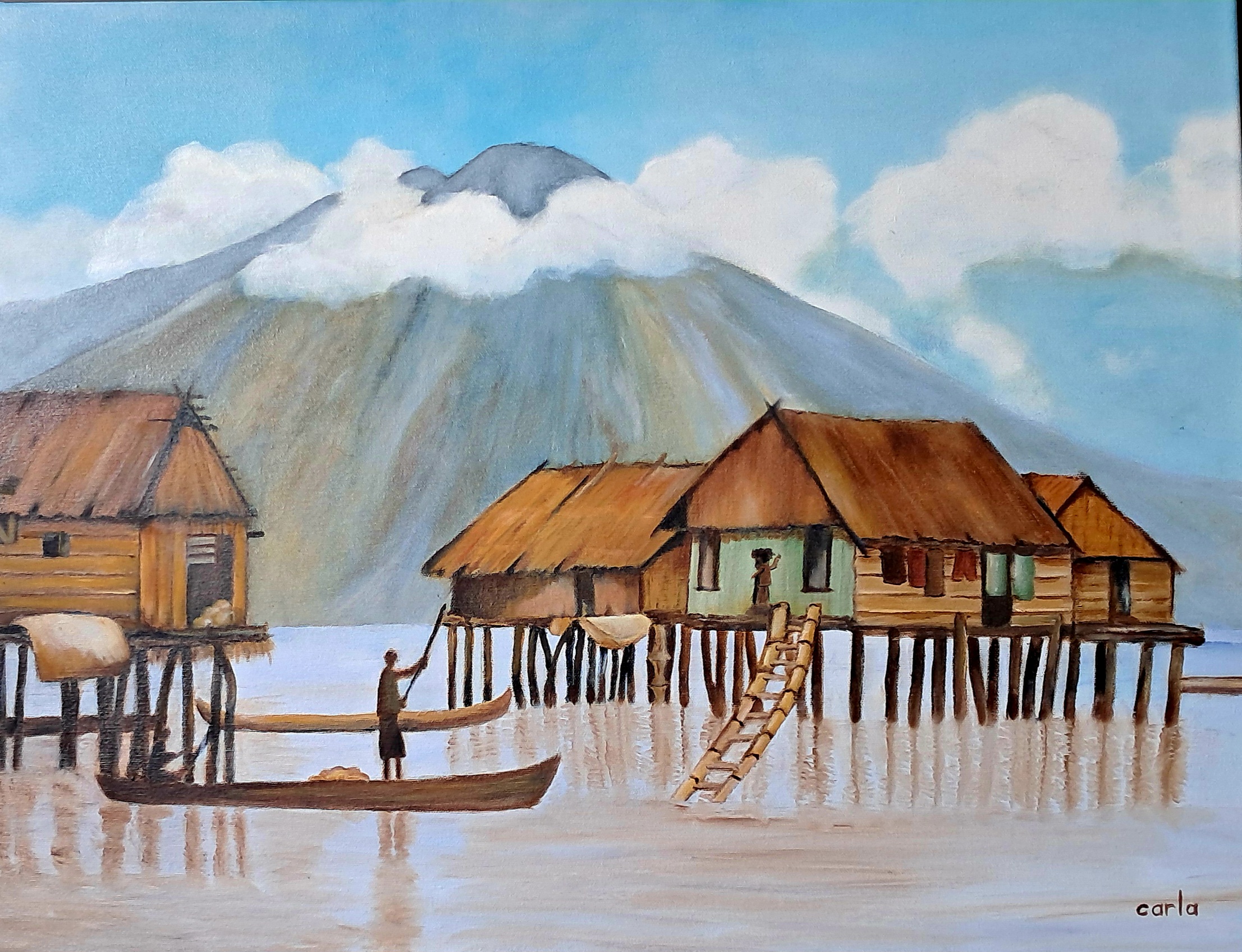 Huizen op palen 3, oil, 50 x 65