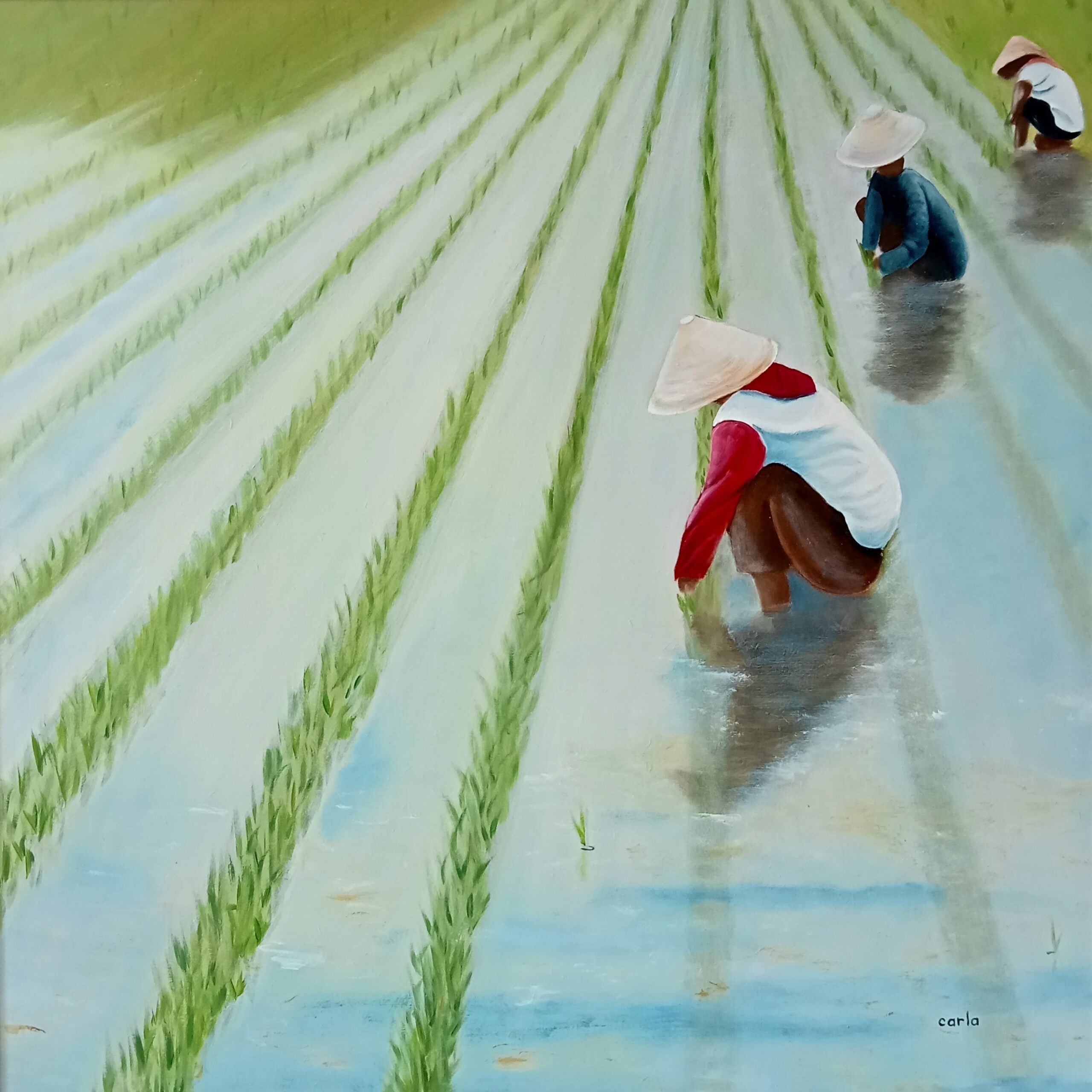 Rijst planten 2, olie, 40 x 40