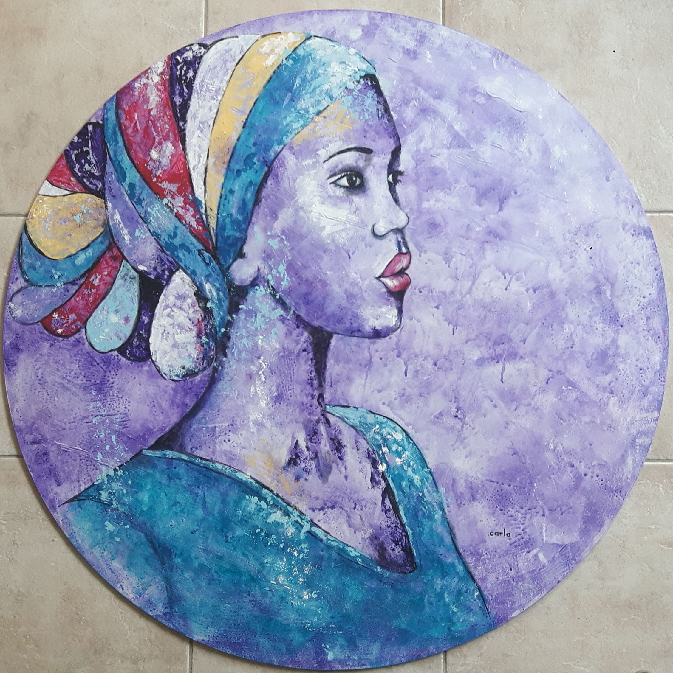 Afrikaanse vrouw, acryl, Ø 90cm